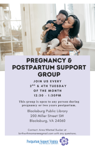 12:30pm – Pregnancy & Postpartum Support Group (Blacksburg)