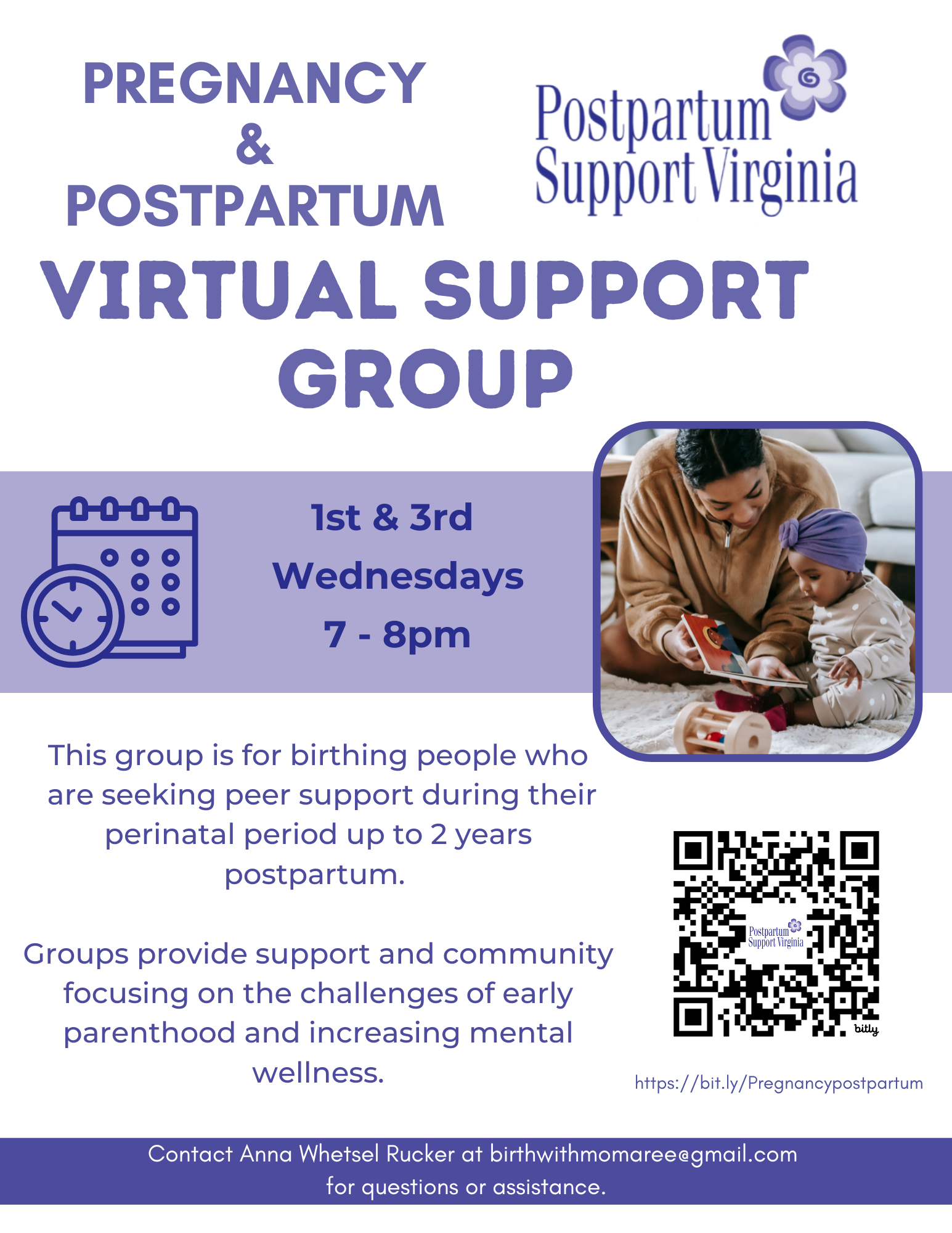 7pm – Pregnancy & Postpartum Virtual Support Group (Virtual)